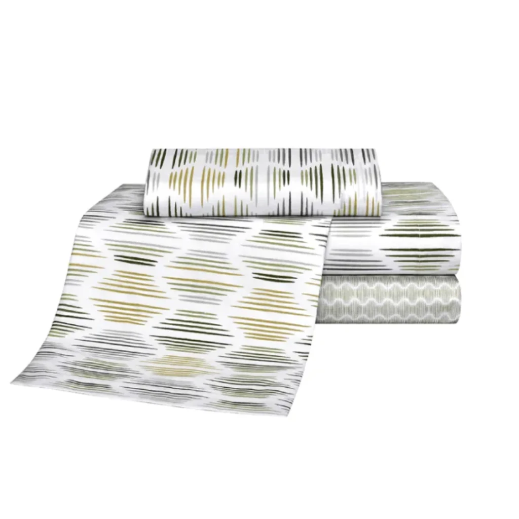 Dormí con confort y estilo con el Juego de Sábanas Danubio Geo, confeccionado en Super Percal de 144 hilos. Su mezcla de 48% algodón y 52% poliéster garantiza una textura suave, duradera y de fácil planchado, ideal para el uso diario.
